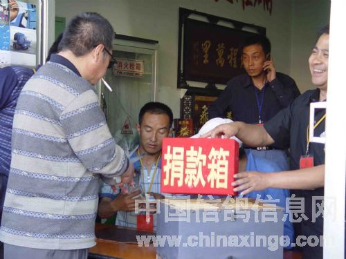 一方有难,八方支援。有钱的出钱,有鸽的出鸽,一幕幕感人的画面出现在我的眼前,2008年5月23日16时,鸽界各个阶层的鸽友从四面八方走来:有企业的老总、政府的公务员、普通市民、郊区的农民。但他们都是响当当的鸽友,因为他们是青海鸽界的一个分子。他们也不富裕,但他们却是精神文明的富翁。一幅幅感人的画面:没有参赛的鸽子,替其它鸽友交费。没有参赛的鸽子,替其它鸽友指定。没有鸽子参赛,向其它鸽友借鸽子参赛。没有参赛的鸽子,填上一张竞翔单,交上参赛费。没有参赛的鸽子,把钱直接放进捐款箱。感人的画面一个接着一个,有的拉出宣传横幅,有的中午12点就赶到集鸽点等候,这些都让人感到鼓舞,感到震动!!!!!