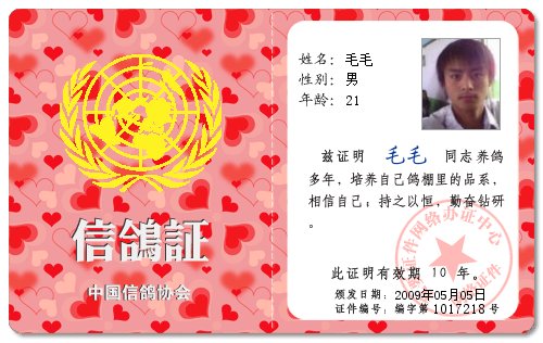做人要诚实..因为说一句谎话你就要说更多的谎话来为前面的谎话圆场. 以鸽会友,养德为上,同道为朋,大爱于天,迷于方寸文字,了此不彼,已心不正,伤人终将伤己……
