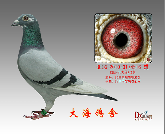 南非太阳城2月2日早晨六点整,2886羽赛鸽开始552公里角逐。据南非组委会介绍,司放时气温16摄氏度,中午35摄氏度,下午14时36分,有两羽鸽子同时到达。飞行时间8小时36分。比利时诺曼.菲利普的一羽灰色雌鸽率先入棚代码是BE0121获得冠军(领先第三羽归巢鸽14分钟之多),此羽赛鸽是世界名鸽“佐罗ZORRO”的孙代鸽,鸽主是现担任比利时全国赛协,另外也是比利时西法兰德省联赛主席有“比利时少帅”之称的诺曼.菲利普,是……