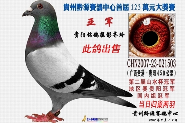 本鸽舍始建于1982年.铭鸽摄影工作室建于2005年. 本人自小就喜欢信鸽,而且还热衷于鸽会工作及群众赛鸽公益活动.1985年就是信鸽二级裁判.于1982年养鸽至今,在信鸽赛绩方面已取得一定成绩,05年取得贵阳市鸽会(500公里)三关赛综合8名,500公里等级赛,通讯赛6名,12名,20名.省市国庆杯联赛6名,云岩区500公里通讯赛亚军,在2007年取得贵州黔源公棚500公里大奖赛决赛亚军等成绩. 在信鸽摄影制作方面,通过几年来的不断努力及钻研,现以被广大鸽友认可及支持.