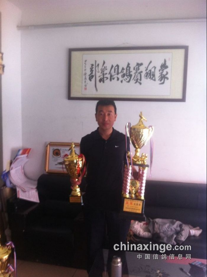 本舍种鸽血统: 友祥鸽业盘锦分舍名家刘平拉曼Lemans 600公里12万羽的全国总冠军直系-波西瓦血系,彼得米卫配荷兰冠军直子,波西瓦乌诺号(乌诺获波治10992羽全国冠军)直系,伟大史多西斯配芮纳飞戈(飞戈波治12266全国总冠军)直系。 呼和浩特名家刘春和2014-05-793040雨砂,此鸽父亲是 2011台620265(荷比冠军直孙),母亲是2013-05-055969 (此鸽为詹森988外孙)荷比冠军回血; 凡龙配荷比123直孙;795057雨砂,父亲是13-05-099664凡龙配詹森,母亲是2008-01-777709詹森血系。 安娜丽丝(安娜丽丝为考夫曼小迪克妹)曾孙配超人号(詹森血统)直子。 近年从各大公棚和协会引进成绩鸽数十羽。 基础种鸽、灰白条砂眼雄,彼得米卫配荷兰冠军直子,08年的鸽子,本身公棚迟归鸽。 一代成绩: 10年协会500公里49名, 11年国家赛80名、127名, 12年包头爱亚卡普129名, 13年包头爱亚卡普461名, 16年协会500公里73名, 17年协会500公里17名 二代成绩: 12年融棚决赛173名, 13年融棚决赛304名, 13年包头景程公棚预赛54名 14年协会300公里15名 15年400公里冠军,26名 15年500公里7名、33名、61名 15年协会700公里11名 17年500公里10名,国家赛90名 17年500公里8名 三代成绩: 15年包头爱亚卡普决赛:446名 16年包头爱亚卡普决赛373名,550公里58名 17年协会300公里8名、 四代成绩: 17年飞翔俱乐部鸽王4位,500公里25名; 18年北国之春200公里63名、580公里116名; 19年天马俱乐部500公里冠军 众多后代发挥中………