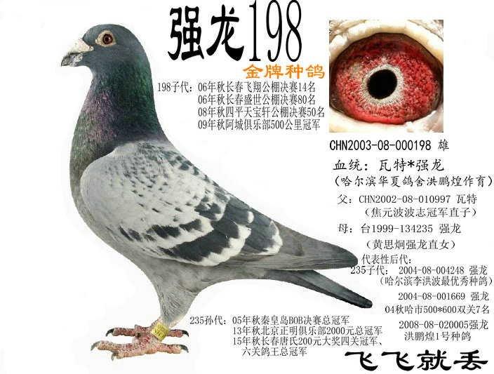 自2007年8月15日开养赛鸽.在08秋季,本人参加的第一界比赛中.荣获2008秋长春市九台地区500公里冠军.现本舍珍藏血系有:李辉凡龙751 洪鹏煌彼得米卫 洪鹏煌强龙 焦元波131*133瓦特,刘滨生瓦特。欢迎各位鸽友互相交流。联系QQ:147039666