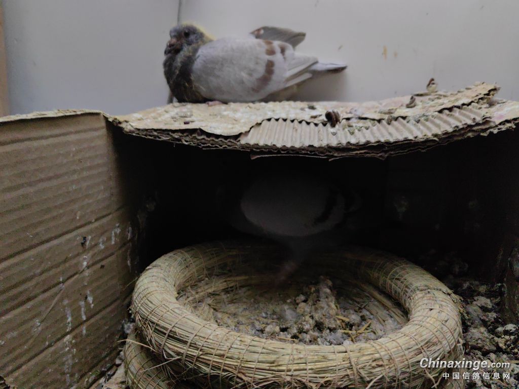 暂时把大铭鸽694蛋和老盖比的蛋换一下,如果成功上绒,8天后就把694蛋抽了,让老盖比再下一窝蛋,由老盖比自己孵。