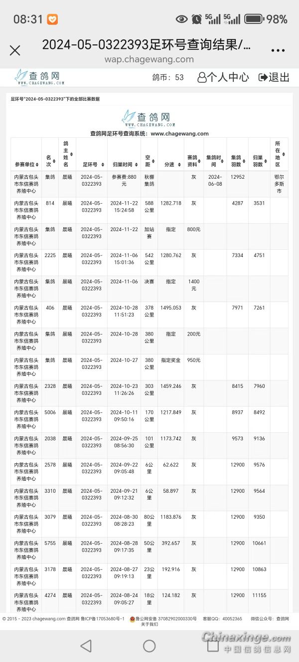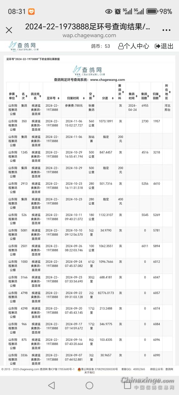 鸽舍赛绩