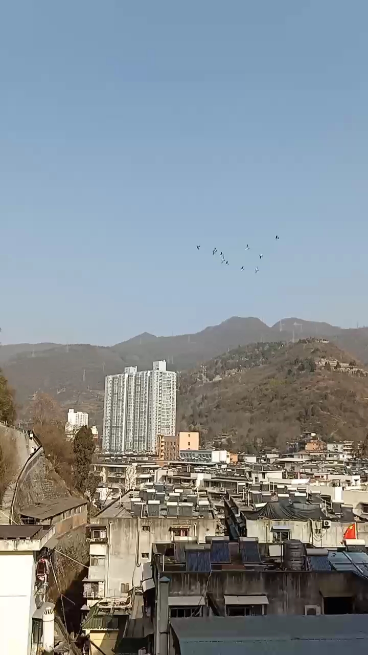 今天有点寒冷,站在楼顶上风吹的人,瑟瑟发抖。几只菜鸟高风速旋转飞行,鸽友们,中午好。