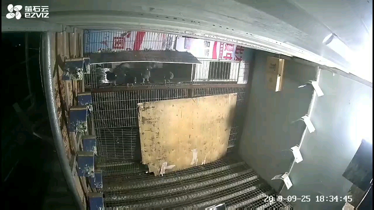 18:34分了,外面天已经暗了,不是监控发现你们没进窝,我都已经去玩了,差点让你们住外头了。灯打开来了,才下来。叫了你们5分钟。