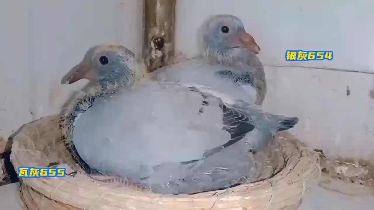 【两灰又出一银灰】前天提到的白爪雄外孙配白爪雄回血女儿出的一窝小鸽子,今天看羽毛基本已丰满,但出奇的是其中有一羽足环尾号654的羽色呈银灰。 两羽瓦灰作出银灰色,在它们家族之前经常有,记得去年这羽小银灰的爷爷超霸194配公棚三关鸽王第七名就曾出了一羽银灰色。 另外,之前白爪雄和它的其他纯瓦灰女儿配瓦灰,也曾经作出过银灰鸽。鸽友们·中午好!