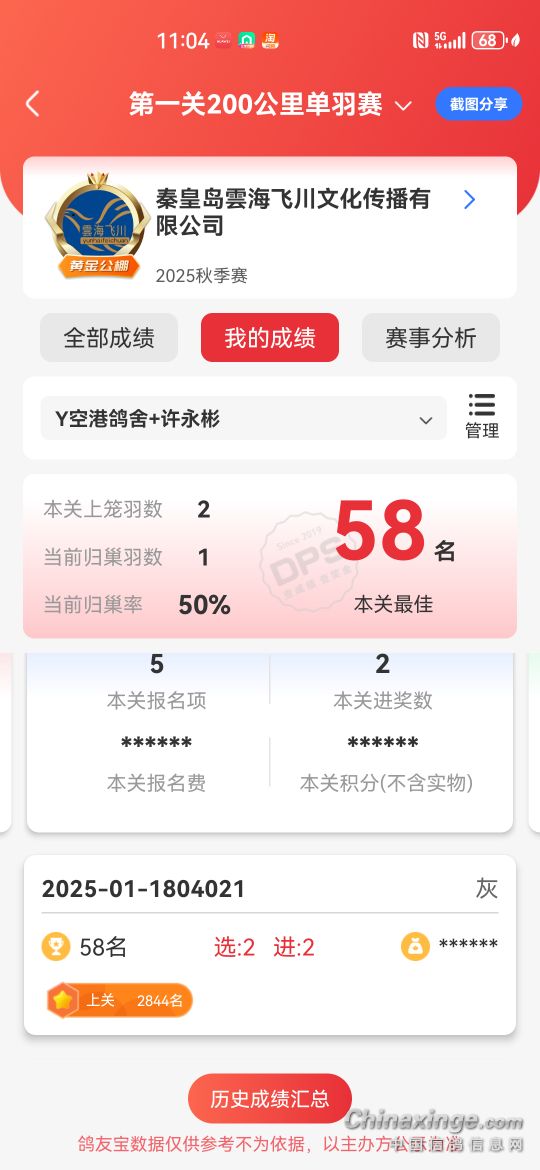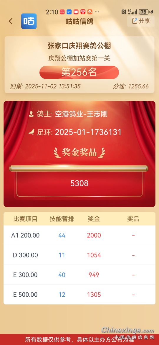 本舍做出,支援鸽友,决赛上3羽,进2羽,完美收官!