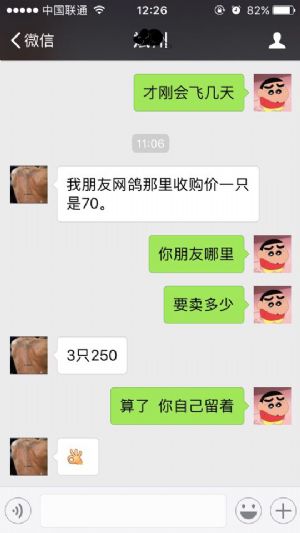 前阵子家飞总计丢失8羽夏季的特比,群里有鸽友发来环号说是山里中网在询问鸽主,其中有我的鸽子,我没想要就没有吱声。今天又有鸽友发来中网鸽环号一看全是我的,加好友后本想赎回,思想挣扎了一下又算了,大哥说能中网总存在某种缺陷,,,好凌乱,出师未捷身先死啊!