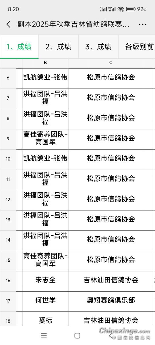 鸽舍赛绩