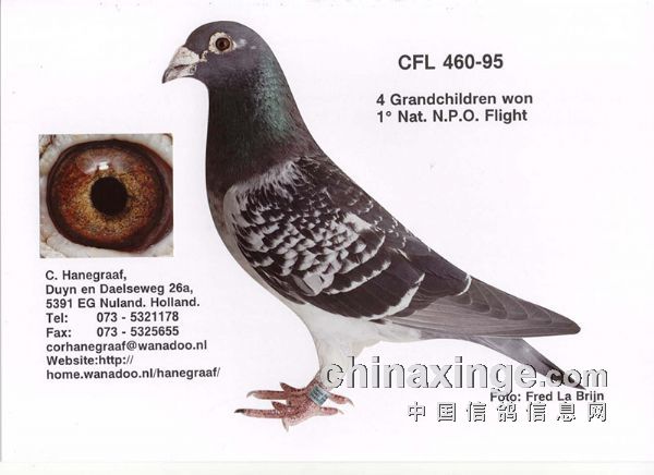 来自荷兰南部纽兰德镇的顶尖强豪科尔·韩纳哈夫(Cor Hanegraaf), 此前国内也有人音译为可·韩纳哈夫或者卡尔·哈能葛夫。不但闻名于荷兰鸽界, 早年即以名扬相邻的德国和英国。早在92年德国出版的<欧洲巨星>杂志上, 科尔.韩纳哈夫就作为封面人物予以刊登, 当年与其并列登载的鸽友包括胡本家族、鲁道克拉森、盖比和卡普豪斯等超级巨星。但是由于韩纳哈夫夫妻鸽舍是一个注重实战的鸽舍, 生性朴实的他一直不热衷于鸽舍的宣传, 多年来他的名字也鲜少被我国鸽友所熟知。