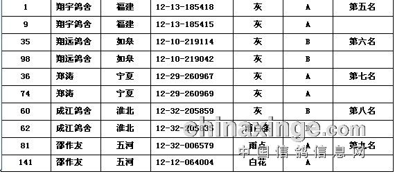 又获得国铭公棚81名、141名指定鸽A组第四、B组冠军、团体九名