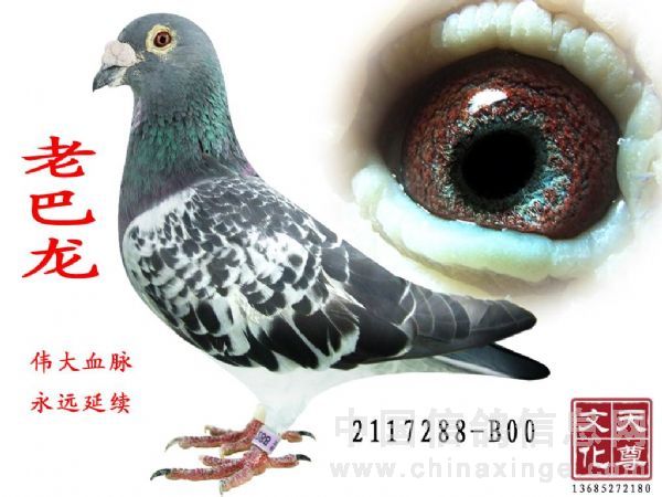 本鸽为闻名世界的伟大传奇缔造者202在比利时的大儿子,该鸽集皇家血统于一身,其身体各部分极具魅力,一派大将风范,等你获取后去细细地品味他吧! 他是一羽真正能造就你成为飞行银行家的超级种雄,它的半兄弟以60万元天价拍卖成交,他的值女以70万的天价拍卖成交,谁拥有他谁就获取了伟大传奇202的嫡系品牌,电脑的核芯种雄,超级王牌。 伟大血脉,永远延续…… 本鸽目前精力旺盛,作种能力极强。到目前为止,本鸽的组合与辈份应真正的属于绝无仅有,同时他也是完全复制伟大传奇202的唯一种雄,09年我帮他选的老婆为006336-08,其辈份为202的孙女,所出后代能与伟大传奇202同样媲美,本母与本雄我将一并献上,就不再参加拍卖了,本雄已纳入了我圆梦赛鸽史册。