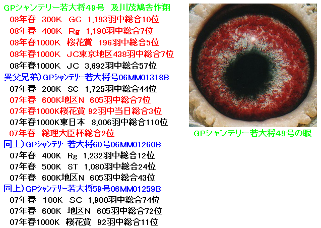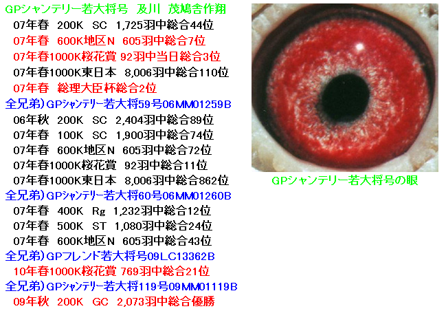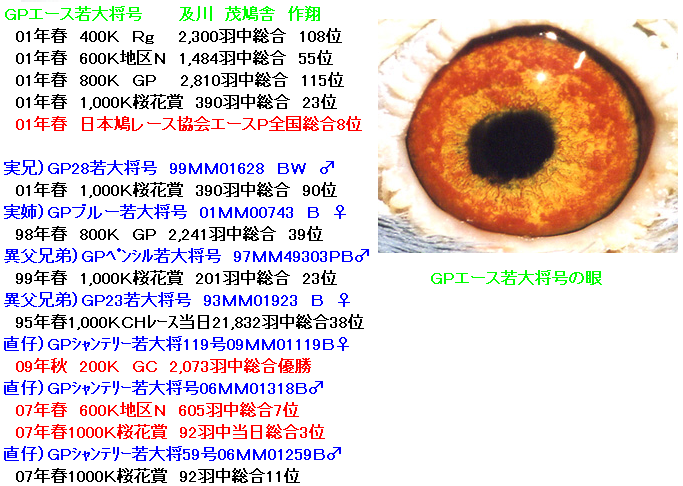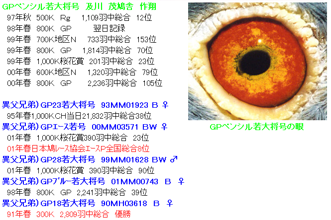 グランプリ若大将号 长谷川诚治作翔 及川茂鸽舍重要种鸽