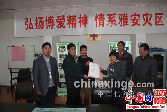 4月21日上午南京市信鸽协会主席赵京朗代表全市3600余名会员到市红十字会向灾区捐赠10万元,以表爱心!同时赵主席还呼吁广大会员进一步关注和支持雅安,为灾区祁福加油,帮助灾区人民早日战胜天灾,重建美丽家园!