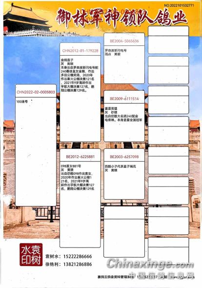 以上信息由鸽舍自行提供,该鸽舍负责信息内容的真实性、准确性和合法性。