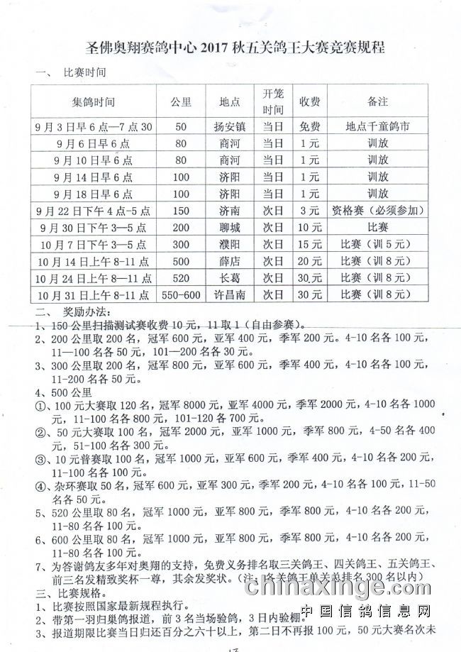 2017秋五关鸽王大赛竞赛规程