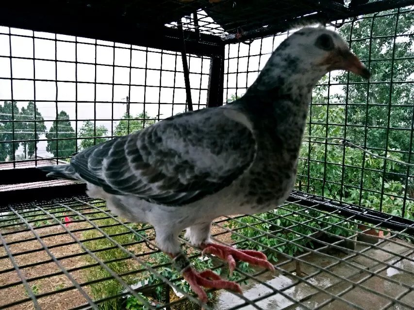 宝鸡俊翔信鸽(寄养)俱乐部、2016年春赛设有白鸽奖,要求白色纯度在百分之九十以上,本想让一纯白雄配一近亲雨白条雌出羽白鸽子,结果出成了麒麟花,看来这羽是没资格了,期待下窝能出羽白鸽子。