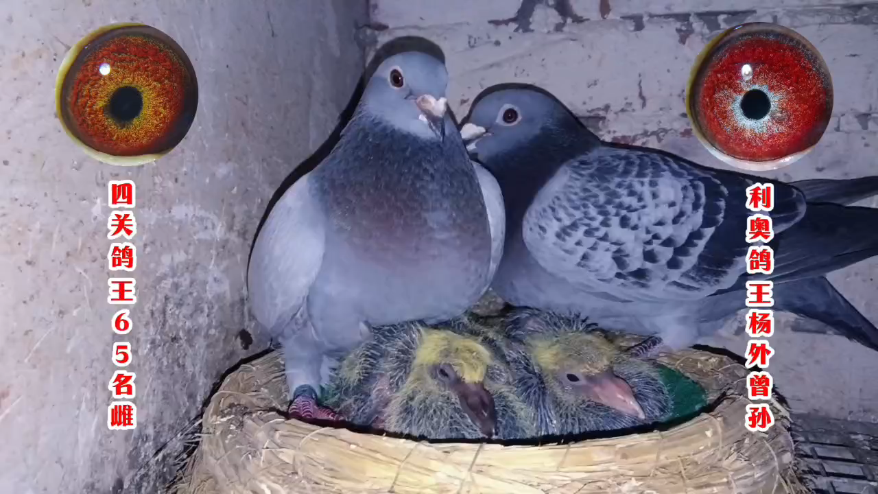 第二配对利奥345雨点雄配四关鸽王65名瓦灰雌(第一配对直女)第三窝,4月5号出壳,4月14号套环987-988。
