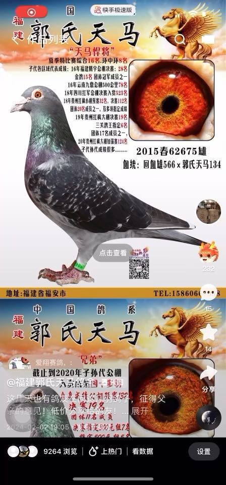 和鸽友聊天:外国的血统那一路用的人少?有可能一百羽飞一羽,就是用的人多而已! 鸽友的提议:当今的中国,要想成系,用利他的模式,要舍得,只要鸽子用的人多了,自然而然都能成为一路血统!为了天马血统的发展,为了能有更多鸽友使翔天马赛鸽! 按合作鸽友的提议:利他共赢的合作方式! 2023年以这样的方式合作了三家公棚:福建海峡公棚,贵州红枫小棚,广东龙湖公棚!两家大赢! 2024年鸽子已经在作育中,有需要合作的鸽友,可以联系!公棚可以鸽友选择! 鸽界只有飞高位,别人才会有印象!2024年期待与使翔郭氏天马的鸽友兄弟们,飞出公棚前三成绩!