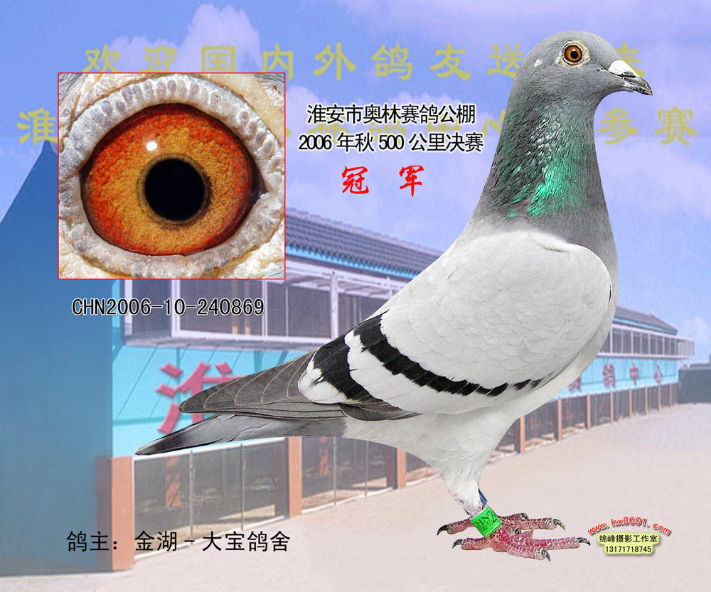 交公棚明智的选择!本鸽舍连续四年公棚大赢家。 [详情请点击我的铭鸽展厅] 公棚赛绩: 2005年淮安奥林公棚决赛8名.9名(预赛67名) 2005年南京长江公棚预赛68名.100名.决赛80名.101名.116名.168名团体8名. 2006年南京长江公棚预赛19名.62名.72名决赛4名.18名.31名.33名.团体冠军.指定鸽冠军.季军. 2006年淮安奥林公棚决赛冠军.7……
