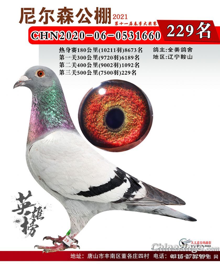 2021年北镇市金龙赛鸽公棚180公里成绩