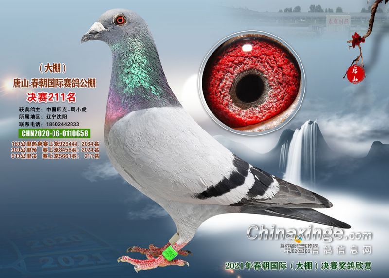 2021年北镇市金龙赛鸽公棚180公里成绩