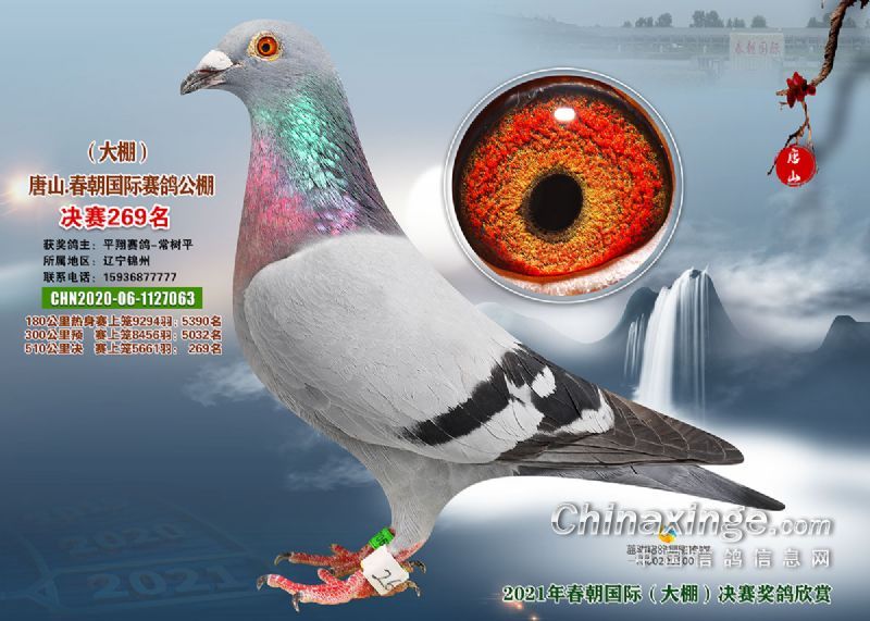 2021年北镇市金龙赛鸽公棚180公里成绩