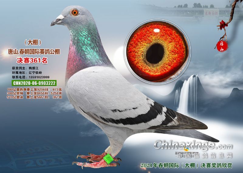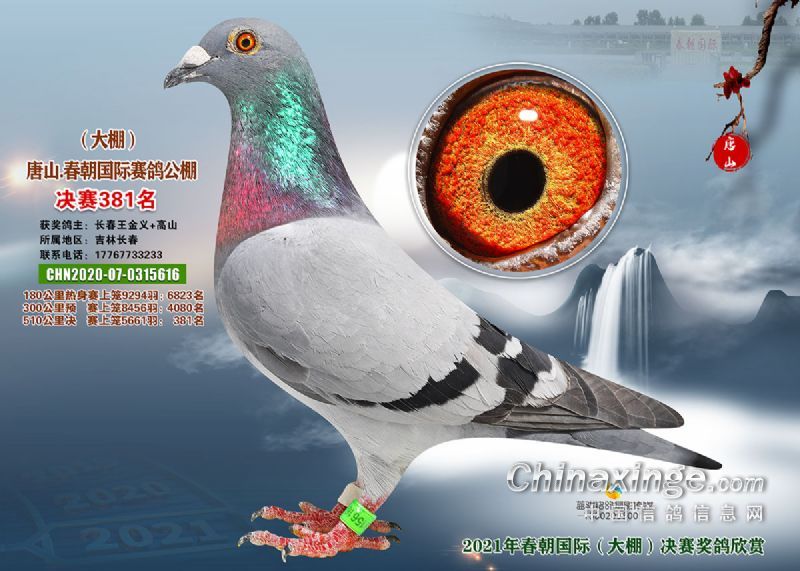 2021年北镇市金龙赛鸽公棚180公里成绩