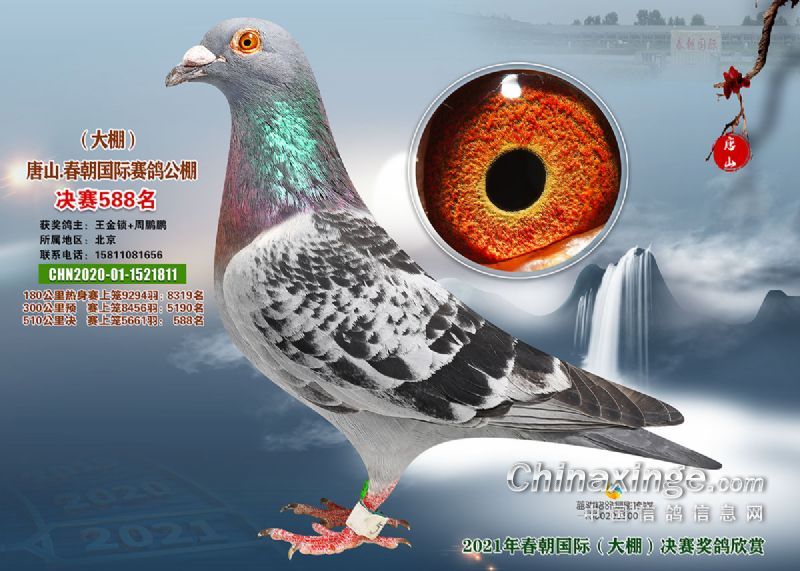 2021年北镇市金龙赛鸽公棚180公里成绩