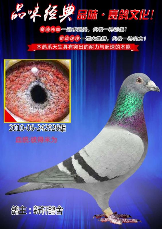 本人自98年在朋友的引导下接触了赛鸽,对此本人也很痴迷,不断引进更新,如今形成与继承了彼得米为的一支血脉。本人工作原因从不打地方赛,在如今眼花缭乱的公棚比赛中本舍将不断改良鸽子的实战型.……