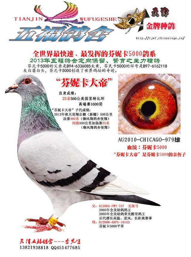 本人自幼爱鸽,养鸽是我的一个爱好,也是缓解工作压力的一种好方法。说来饲养信鸽也有些年头了,由于工作的特殊性,不能参加正常的地方比赛, 所以只参加公棚赛。希望能借此平台广交天下鸽友!现有以下品系:福乐.佛沃特芬妮卡5000、克拉克613、飞戈、波西瓦、盖比闪电号、艾迪.格罗、瓦特、考夫曼、迪尔巴等。QQ451477685,电话13821938818,18202600059……