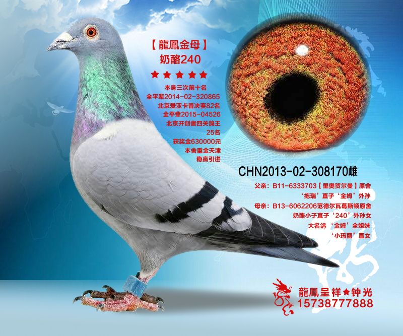 本舍主要血统:戈马力{年轻巴龙}【奶酪小子】直孙女、桑杰士、胡本、彼得曼德斯、克拉克 2009年春濮阳祥和公棚决赛39名 2009年秋300公里冠军 2009年秋500公里亚军、季军 2009年秋峰峰亿能公棚决赛196名、278名 2010年春安阳铁路信鸽协会汤阴支会300公里西平站2008-32-336458获冠军、指定鸽冠军 2010年春安阳铁路信鸽协会汤阴支会470公里李家寨 、亚军、10名 2010年春安阳铁路信鸽协会汤阴支会500公里广水2009-32-123725 获5名、双关4名 2010年秋安阳铁路信鸽协会汤阴支会300公里西平站冠军 2010年秋安阳铁路信鸽协会汤阴支会500公里杨寨站亚军 2010年秋邢台建功公棚500公里决赛70名 2011年春安阳铁路信鸽协会汤阴支会300公里6名8名 2011年春安阳铁路信鸽协会汤阴支会500公里亚军、8名 2011年秋安阳铁路信鸽协会汤阴支会500公里杨寨站特比环亚军、7名、普赛季军 2011年秋邢台建功公棚500公里决赛39名 2011年秋邢台正义公棚500公里决赛49名298名,选送两羽全部进奖 2012年春河北腾祥公棚500公里决赛22名 2012年春安阳飙鸽俱乐部300公里21名 2012年春安阳飙鸽俱乐部450公里季军、32、49名 2012年春安阳飙鸽俱乐部500公里17、20名 2012年春安阳飙鸽俱乐部570公里90、97名 2013年春濮阳祥和公棚决赛66名、286名。百日龄幼鸽赛119名 2013年秋郑州信力公棚决赛89名 2013年秋郑州华远公棚决赛102名 2013年秋廊坊京亿公棚决赛153名 2013年秋秦皇岛晟翔公棚决赛279名 2013年秋天津恒兴公棚决赛147名 2013年秋山东蓝天表飙翼公棚加强赛22名、三关鸽王32名.张书庆使翔 2014年春濮阳祥和公棚决赛125名 2014年春中原油田信鸽协会安阳石化分会450公里15、42、46 2014年春中原油田信鸽协会安阳石化分会500公里冠军、70 2015年春陕西威力春棚500公里51名、370名团体17名 2015年秋北京惠翔公棚500公里207名 2015年秋郑州华远公棚500公里61名