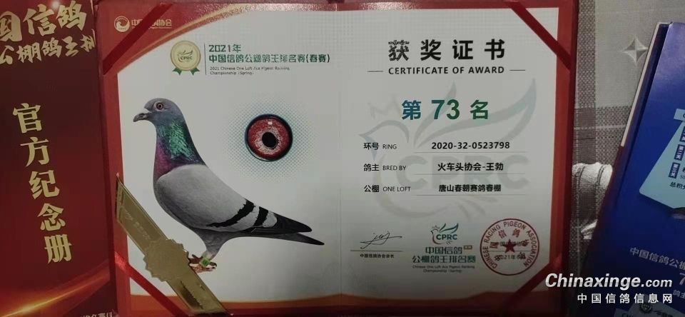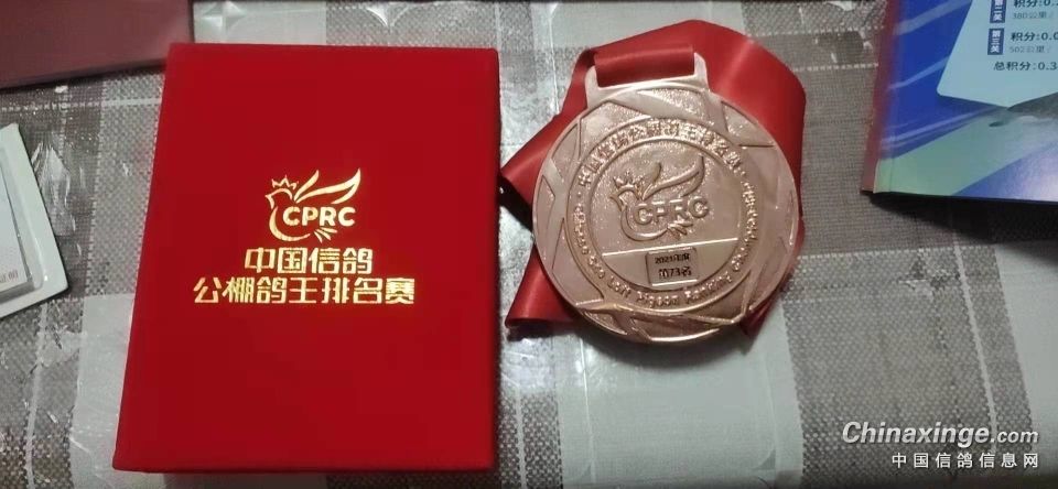 感谢:中国信鸽协会官方给王博士颁发的奖牌!