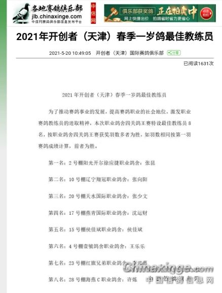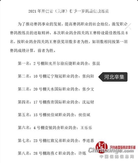 祝贺:开创最佳教练第二名 张向阳(河北辛集)