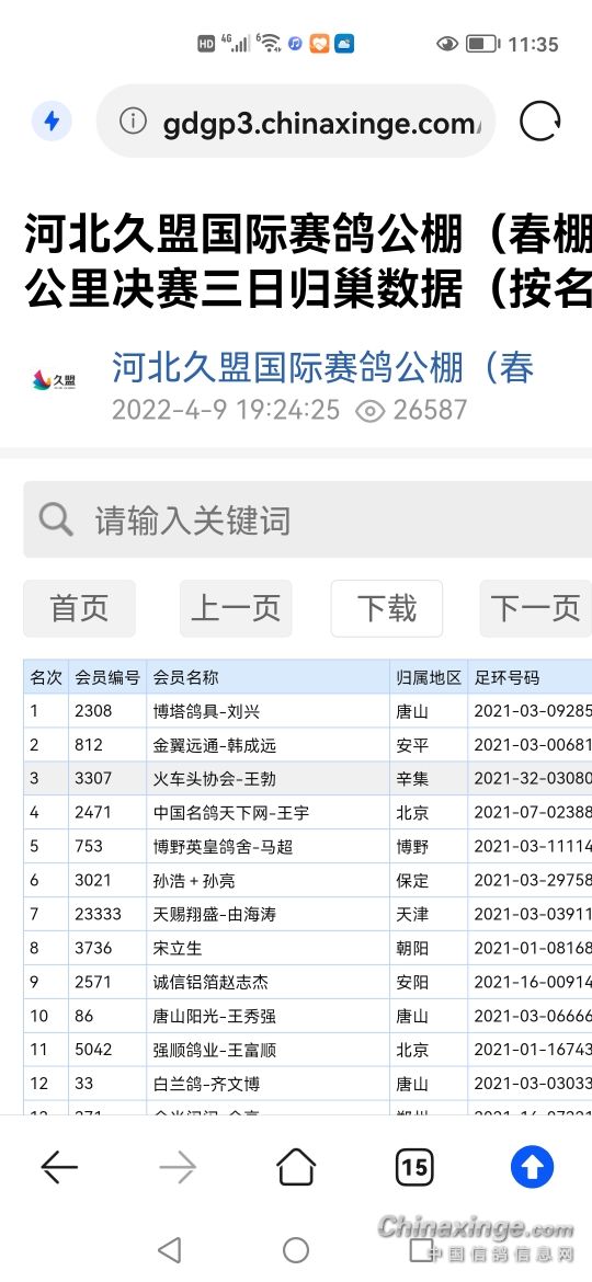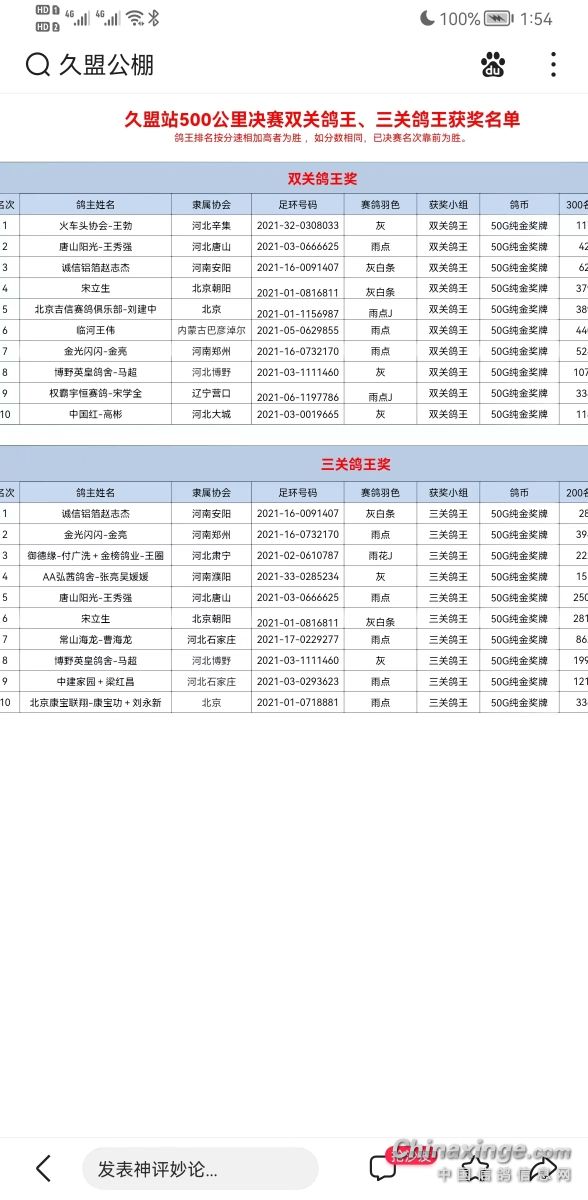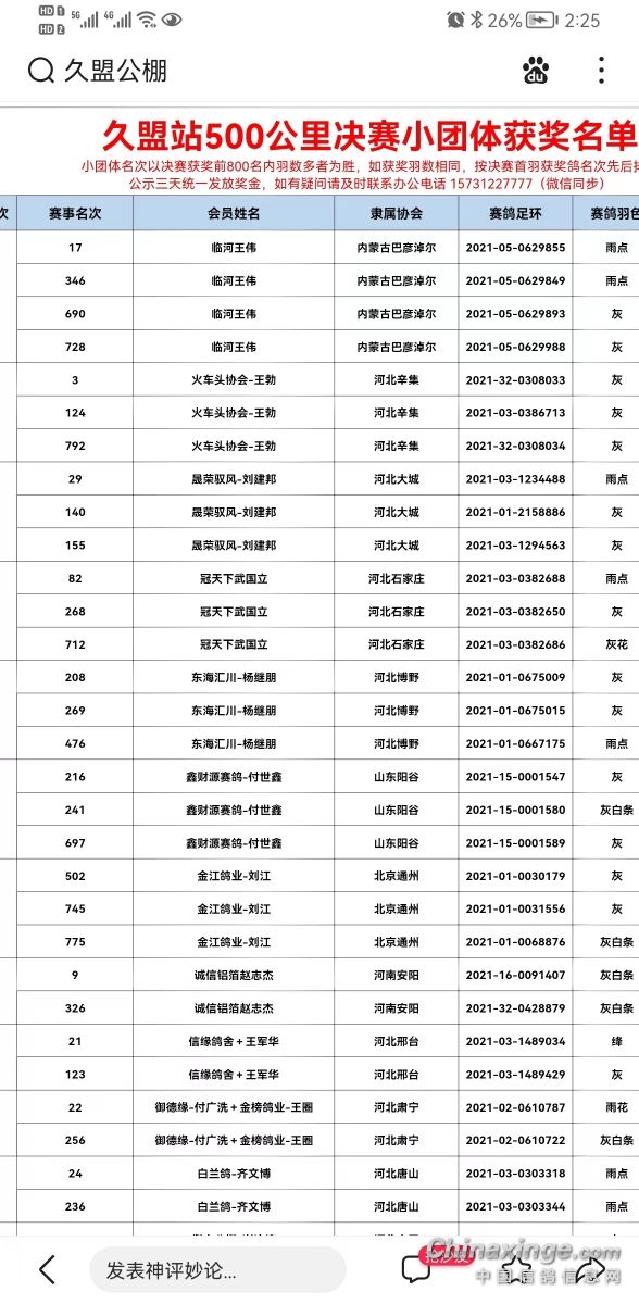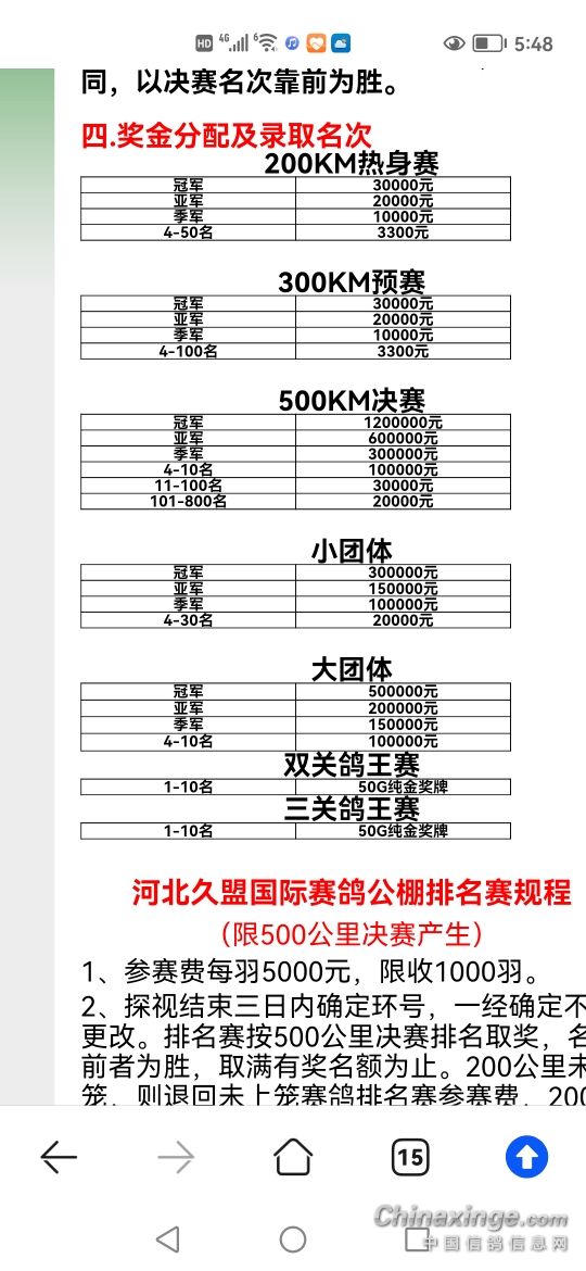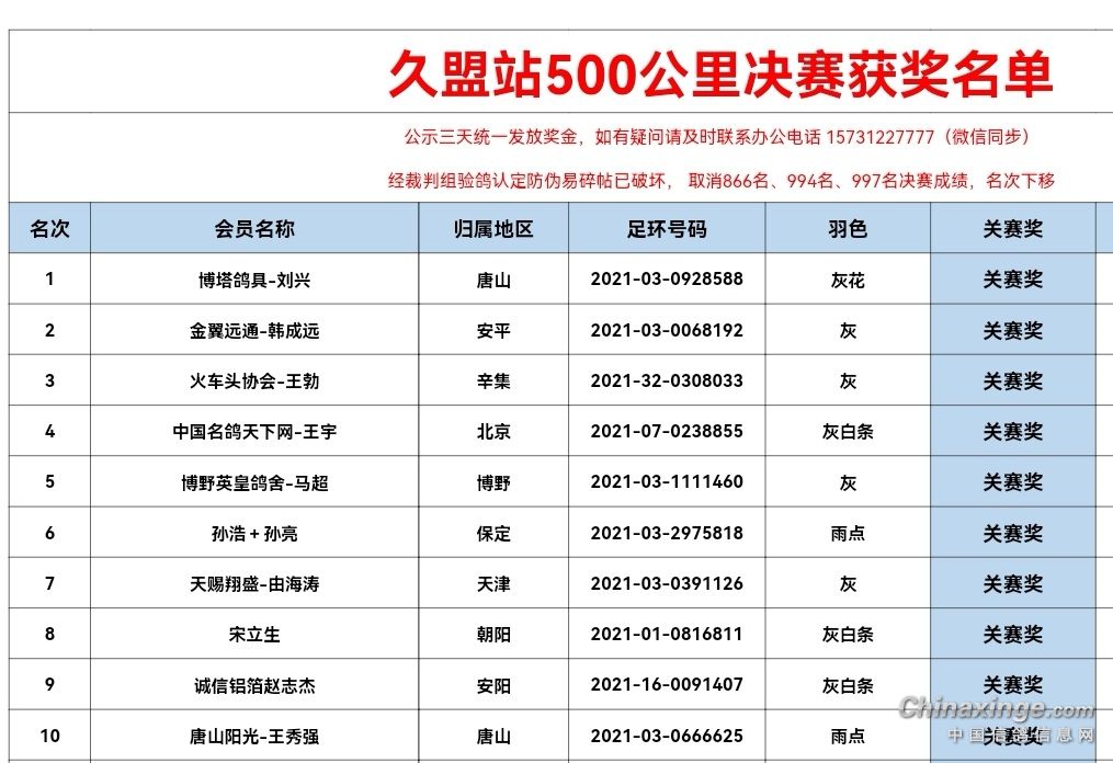 238215312200公里指定项目A1,A2,B1,B2,D1河北辛集2021-32-0308033灰31173307小团体2名成员?双关鸽王1名 500公里获得 A2组1名;A1组1名;B1组1名;B2组1名;C1组1名;C2组1名。 300公里获得 A1组50名;B1组32名