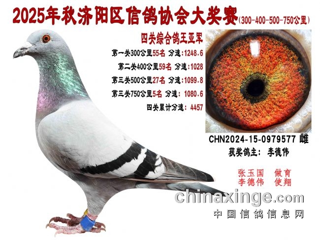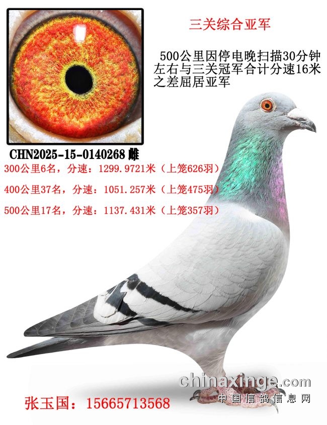 300公里、400公里、500公里三关综合亚军2025-15-0140268灰、黄眼,指定赛场场稳拿。(因500公里赛事停电导致晚扫描30分钟左右以与三关冠军分速16米之差屈居亚军)