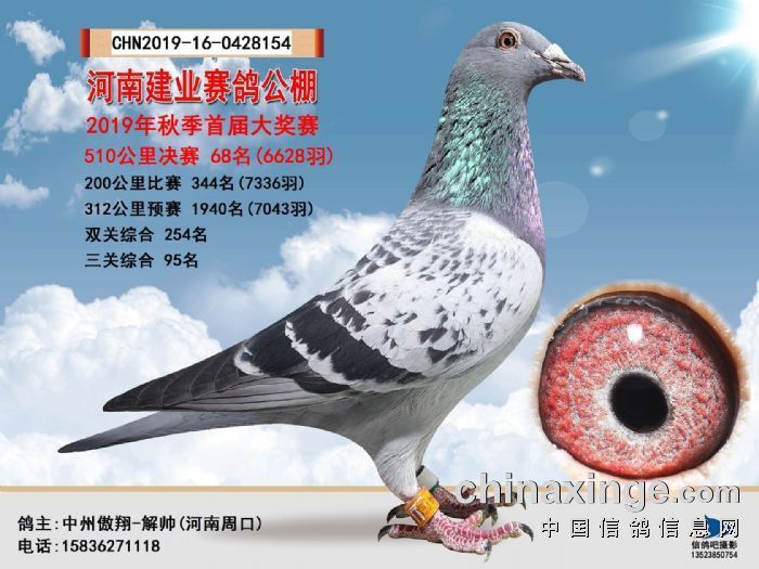 挑战自己最新赛绩2016郑州铂霖公棚预赛20名41名。决赛24名42名253名。三关鸽王4位9位。山东鲁成决赛483名。安徽鹏宇公棚一关34名决赛407名。2017郑州铂霖公棚200公里13名 2000元指定1 300公里66名 520公里13名348名团体15名鸽王10名2019郑州建业公棚决赛68名89名256名2019郑州建业公棚加站双关75……