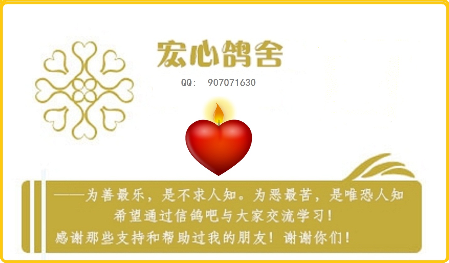 本人地理位置处在豫皖边境的河南固始县一个小镇,从小酷爱信鸽,几经蹉跎断断续续饲养信鸽至今20多年。没有名血,没有名绩,只是希望在自己平常的日子里有鸽相伴……