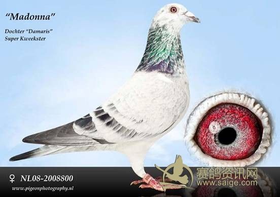 “柔奔”的全妹鸽“麦当娜”NL08-2008800,作出直子“GPS”获国家长距离鸽王4位。