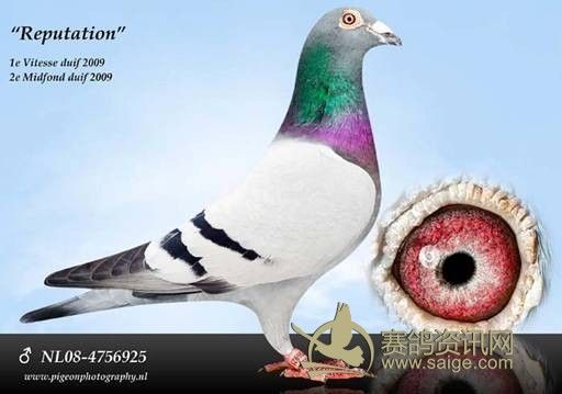 另外值得一提的是“柔奔”的一个直子名叫:“最高荣誉”NL08-4756925晚生灰,三个月大时因雪天迷飞进了别人的鸽棚,不可思议的是,2009年它在别人的鸽舍里以出色的表现,击败强豪金手指哈姆,和巨无霸考夫曼,获得竞争最激烈的第十区域赛鸽联盟的双项快速+中距离鸽王冠亚军。