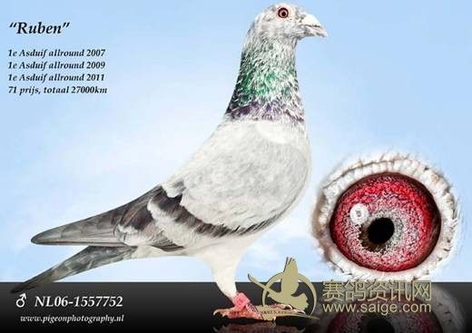 荷兰鸽友特傲 威马繁育的“柔奔”NL06-1557752花雄,2007年、2009年、2011年三次评为荷兰全能鸽王冠军,一举成为佼佼者。这是自著名赛鸽家约翰 伯斯玛离开鸽坛以后,第二个用吐尼尔血统成功作出“大名鸽”的超级小鸽舍。