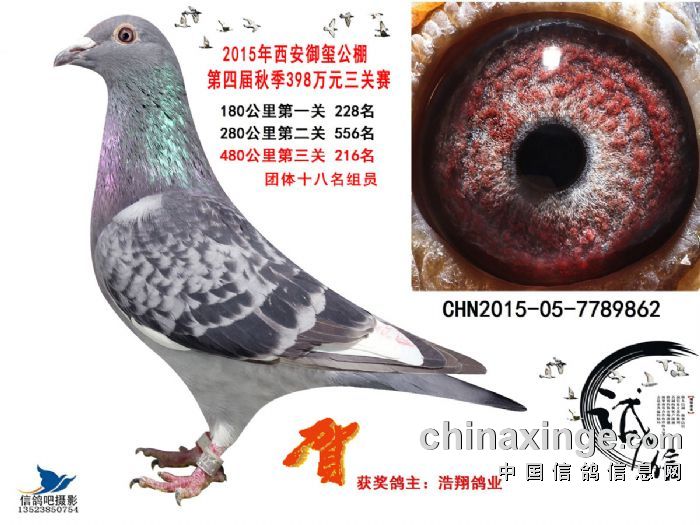 本舍最新荣获2015年西安御玺公棚决赛上笼3羽入赏3羽,获得123名,216名,374名团体18名。