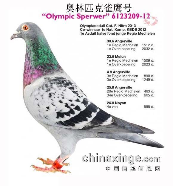13年奥林匹克比利时代表鸽F组鸽王亚军