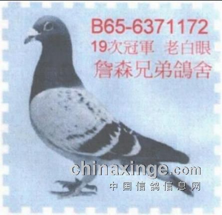 “老白眼”B65-6371172,是詹森兄弟在二战后唯一杂交尝试的产物,它于1965年出生,在16岁(高龄时)仍能育出二枚有精鸽蛋。