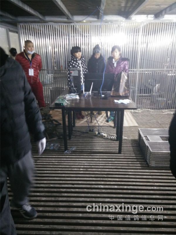 我们于当天下午5点左右赶到了公棚,30号凌晨1点30左右公棚开始上到鸽棚,逐羽扫描集鸽,由于提前的准备工作做得不好,公棚方的电脑连不了网,30多位鸽友们一直等到3点多才开始抓鸽扫描。以下是在公棚拍到的鸽友爱鸽照片:
