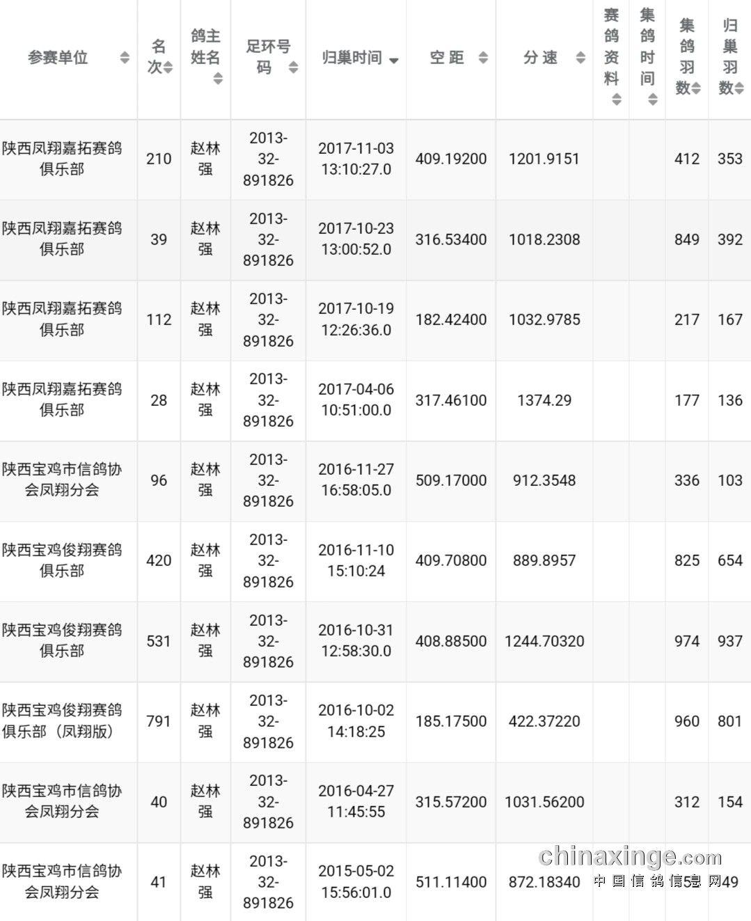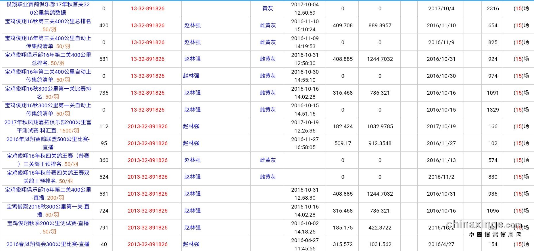 鸽舍赛绩