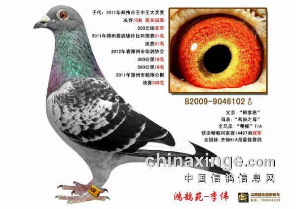 河南省郑州市金水区鸿鹄苑李伟欢迎您的光临!以鸽会友、互相学习、探讨共同进步!1393908811708年郑州翔和公棚决赛12名 08年郑州卉德翔公棚决赛295名09年郑州市信鸽协会300公里24、63名500公里45、67名10年郑州市王中王特比环决赛63、331名11年郑州市王中王特比环决赛124、188、192名13年郑州市王中王特比环39名......等,团体亚军、千元组指……