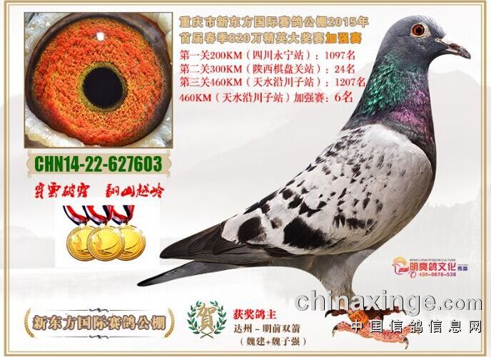 本人从小喜爱鸽子,养鸽经验数十年,2005年退休后在北京彭氏兄弟购买整棚种鸽,其血缘有大班,贺伯特,詹森019,胡本,西格穆勒等等。。本人愿结交天下鸽友相互交流,本人电话18228629388. 本人常年打公棚,鸽舍赛绩有最新比赛成绩,欢迎互相交流心得……