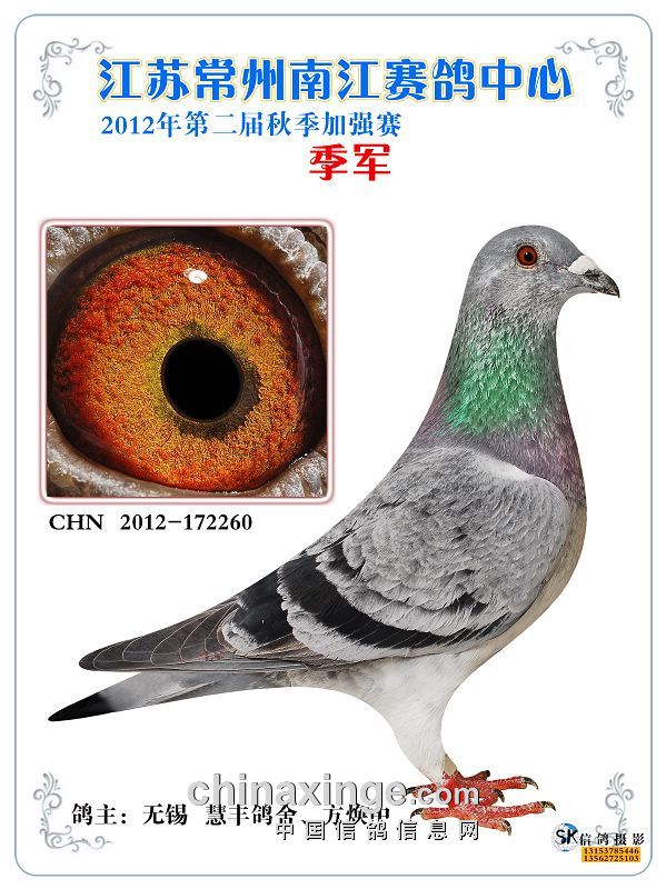 养鸽如参禅.悟到就是一层纸.愚钝就是座座山.养鸽没什么神话.神即道.道法自然.如来。本舍种鸽源于2001年.2004年二届700公里级国家赛全国总冠军获得者-无锡兴荣鸽舍。血统:詹森.戈马利电脑.势山.考夫曼.威廉吉尔特.斯古曼斯 罗曼.雅戈比.范王路易90号